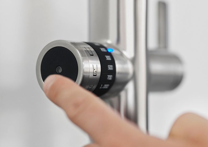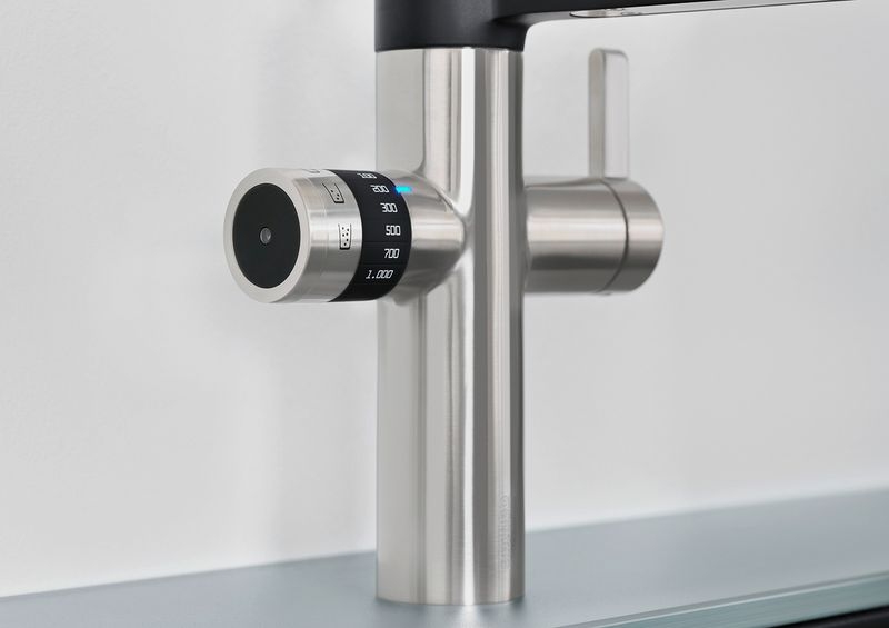 Still, medium, sprudelnd: Kohlensäuregehalt des gefilterten Trinkwassers wählbar über separates Drehrad
