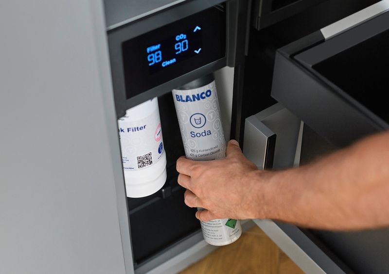 - Bitte achten Sie darauf, dass Sie bei einem nötigen Wechsel des CO2 Zylinders das Starterkit Art.Nr. 526138 direkt bei Blanco im Ersatzteilshop beziehen. Dieses kann dann später immer wieder im Recycling-System mit Art.Nr. 526139 ausgetauscht werden. Bei der Neulieferung der Refill-Zylinder ist immer ein Retourenschein beigelegt.