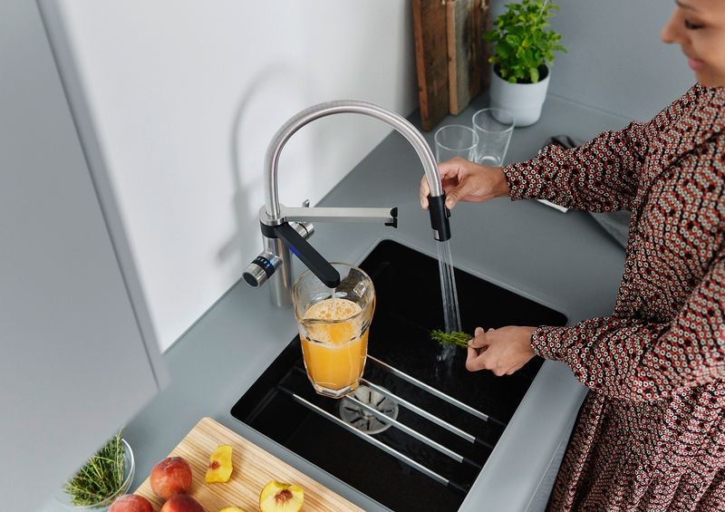 - 5-in-1 Semi-Profi -Armatur: Kaltes, warmes, sowie gekühltes, veredeltes Trinkwasser still, medium und sprudelnd
