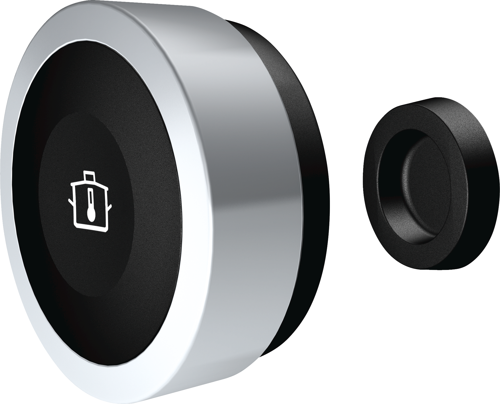 Lieferumfang: 1 kabelloser Kochsensor mit Batterie und 5 Silikonpflaster zur Befestigung am Topf Kabelloser Temperatursensor für Kochfeld