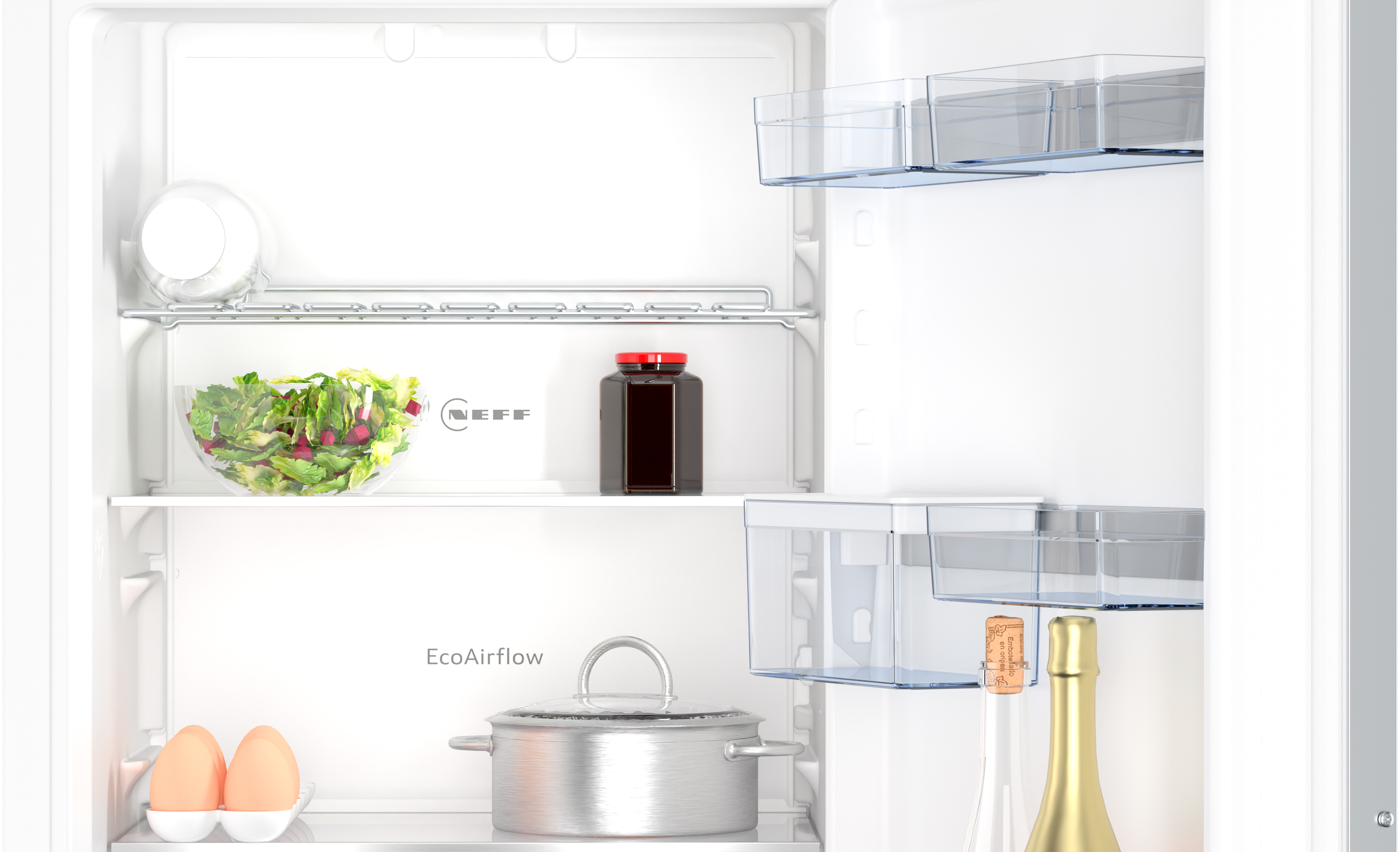 | USP 5: | Höhenverstellbare Böden: flexible Glasböden schaffen den Platz, den Sie für inspirierende Gerichte in Ihrem Kühlschrank benötigen. |