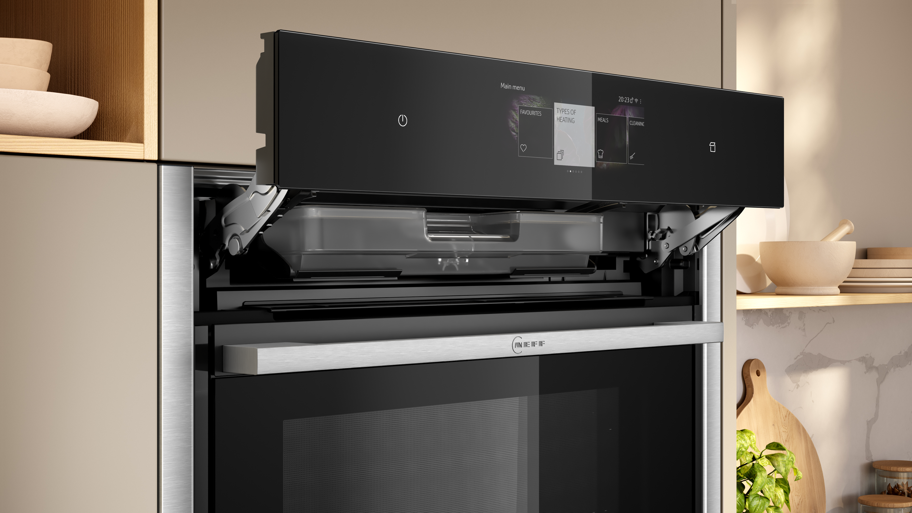 | USP 2: | Slide & Hide®: die voll versenkbare Ofentür verschwindet vollständig unter dem Backofen und ermöglicht einen freien und direkten Zugang zu Ihrem Gericht. |