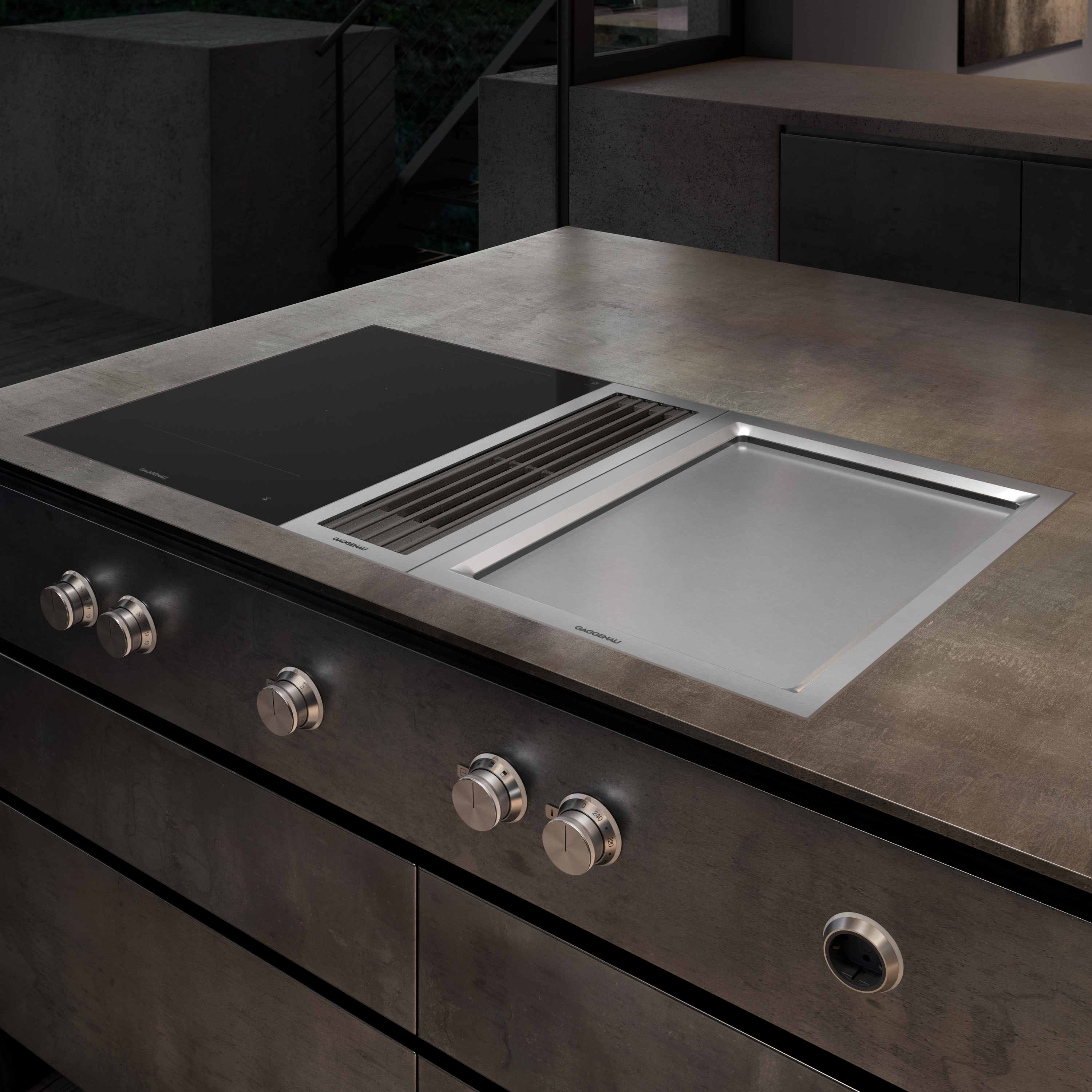 Perfekt flächenbündig kombinierbar mit weiteren Vario Geräten der Serie 400 Präzise verarbeiteter 3 mm starker Edelstahl Massiver Edelstahl-Bedienknebel Hocheffiziente geräuscharme Lüftungslösung, besonders mit Gebläsebaustein AR 410 110 Funktion zur automatischen sensorgesteuerten Leistungsanpassung entsprechend der Kochdunstentwicklung weitere Details Perfekt flächenbündig kombinierbar mit weiteren Vario Geräten der Serie 400 Präzise verarbeiteter 3 mm starker Edelstahl Massiver Edelstahl-Bedienknebel Hocheffiziente geräuscharme Lüftungslösung, besonders mit Gebläsebaustein AR 410 110 Funktion zur automatischen sensorgesteuerten Leistungsanpassung entsprechend der Kochdunstentwicklung Geringer Planungs- und Installationsaufwand Leistung Leistungswerte sind abhängig vom Gebläsebaustein. Ausstattung Bedienknebel mit Leuchtring im Lieferumfang enthalten. 3 elektronisch gesteuerte Leistungsstufen und 1 Intensivstufe. Automatische sensorgesteuerte Leistungsanpassung des Lüftungssystems. Automatische sensorgesteuerte oder manuelle Nachlauffunktion. Großflächiger Metall-Fettfilter mit hohem Fettabscheidegrad. Fettfiltereinheit herausnehmbar, spülmaschinenfest. Fettfilter- und Aktivkohlefilter-Sättigungsanzeige. Strömungstechnisch optimierter Innenraum für effiziente Luftführung. Intervall-Lüftung, 6 min. Lüftungsgitter emailliert, spülmaschinenfest. Luftauslassbogen im Lieferumfang enthalten. Überlaufkapazität 250 ml. Kochfeldbasierte Lüftungssteuerung (mit passendem Kochfeld). Heimnetzwerkintegration für digitale Dienste (Home Connect) kabelgebunden über LAN (empfohlen) oder kabellos über WiFi. Die Nutzung der Home Connect Funktion ist abhängig von den Home Connect Diensten, welche nicht in jedem Land verfügbar sind. Weitere Informationen hierzu finden Sie unter home-connect.com. Verbrauchsdaten Werte beziehen sich auf die Konfiguration mit dem Gebläsebaustein AR 403 122. Energieeffizienzklasse A+ auf einer Skala der Effizienzklassen von A+++ bis D. Durchschnittlicher Energieverbrauch 40.4 kWh/Jahr. Lüfter-Effizienzklasse A. Beleuchtungs-Effizienzklasse -. Fettfilter-Effizienzklasse B. Geräusch min. 57 dB / max. 71 dB Normalstufe. Planungshinweise Je VL ist ein Gebläsebaustein empfohlen. Maximale Kochfeldbreite oder Kochfeldkombinationsbreite zwischen zwei VL : 80 cm (außer CX 482). Vario Kochfelder wie Vario Gas-Wok sowie Vario Elektro-Grill sollten möglichst zwischen 2 VL platziert werden. Umluftbetrieb wird nicht empfohlen in Kombination mit Vario Elektro-Grill. Für eine optimale Performance im Umluftbetrieb wird eine Ausströmfläche von min. 400 cm² empfohlen. Bei Betrieb neben Gasgeräten ist die Luftleitschiene AA 414 010 empfohlen, um die maximale Leistung des Kochfeldes sicherzustellen. Gerät ist von oben in die Arbeitsplatte einschnappbar. Je nach Einbauart (aufgesetzt oder flächenbündig) auf die spezifische Festlegung des Ausschnittes und der Knebelpositionen achten. Bei der Kombination mehrerer Vario Geräte der Serie 400 muss eine Verbindungsleiste VA 420 zwischen den Geräten eingesetzt werden. Je nach Einbauart entsprechende Verbindungsleiste vorsehen. Die Tragfähigkeit und die Stabilität insbesondere bei dünnen Arbeitsplatten ist durch geeignete Unterkonstruktionen sicherzustellen. Gerätegewicht inkl. zusätzlicher Beladung berücksichtigen. Zusätzliche Hinweise für flächenbündigen Einbau: Der Einbau eignet sich in Arbeitsplatten aus Stein, synthetischem Material oder Massivholz. Hitzebeständigkeit und wasserdichte Versiegelung der Schnittkanten sind zu berücksichtigen. Bei anderen Materialien stimmen Sie sich bezüglich der Verwendung mit dem Arbeitsplatten-Hersteller ab. Die Nut muss durchgängig und eben sein, um eine gleichmäßige Auflage der Geräte auf der Dichtung zu gewährleisten. Keine punktuellen Unterfütterungen verwenden. Durch Maßtoleranzen der Kombinationen und des Arbeitsplattenausschnittes kann die Fugenbreite variieren. Bei Installation einer Lüftung mit Abluftbetrieb und einer kamingebundenen Feuerstelle muss die Stromzuführung der Lüftungsgeräte mit einer geeigneten Sicherheitsschaltung versehen werden. Weitere Planungshinweise auf Seite xx beachten. Anschlussdaten Gesamtanschlusswert 10 W. Anschlusskabel 1.8 m mit Stecker. LAN-Kabel nicht im Lieferumfang enthalten. Leistung Standby/Display aus 0.2 W. Bitte beachten Sie die Hinweise in der Gebrauchsanweisung, wenn Sie die WiFi-Funktion ausschalten möchten.
