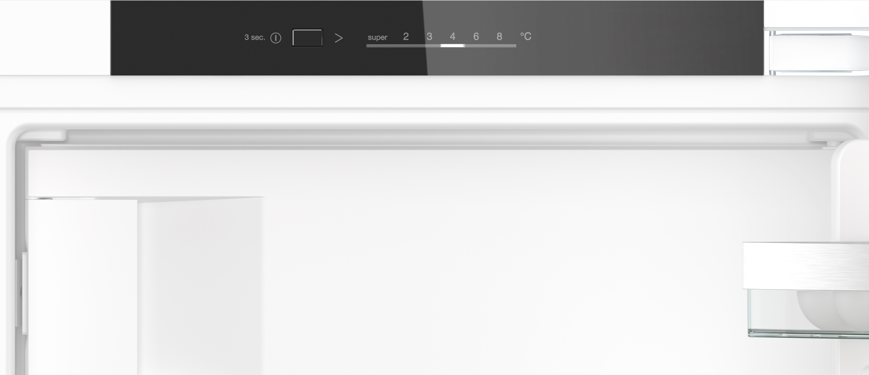Mit superCooling können Sie die Temperatur Ihres Kühlschranks für eine eingestellte Zeit senken, um frische Lebensmittel schnell zu kühlen. Damit wird ein unerwünschter Temperaturanstieg der bereits gekühlten Lebensmittel verhindert.