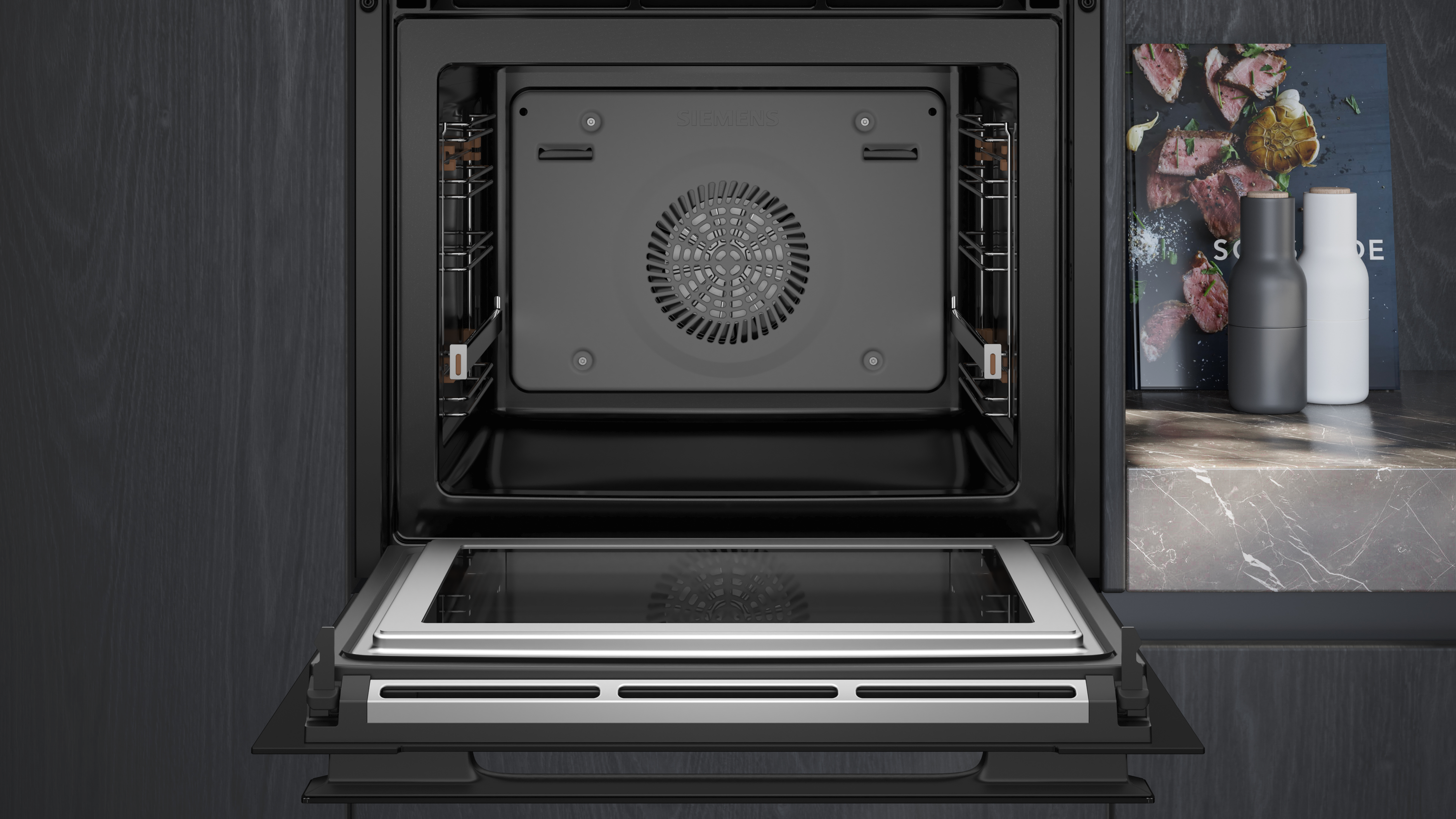 Perfekt für eine schnelle Reinigung zwischendurch: Mit humidClean Plus wird das Reinigen deines Backofens besonders einfach. Gebe dazu einfach einen Tropfen Spülmittel in 400ml Wasser. Gebe diese Lösung anschließend in die Mitte des Bodens deines vollständig abgekühlten Backofens. Stelle humidClean Plus ein uns dein Backofen kümmert sich um den Rest. Sobald das Programm durchgelaufen ist, kannst du die Rückstände einfach mit einem Tuch aufwischen.